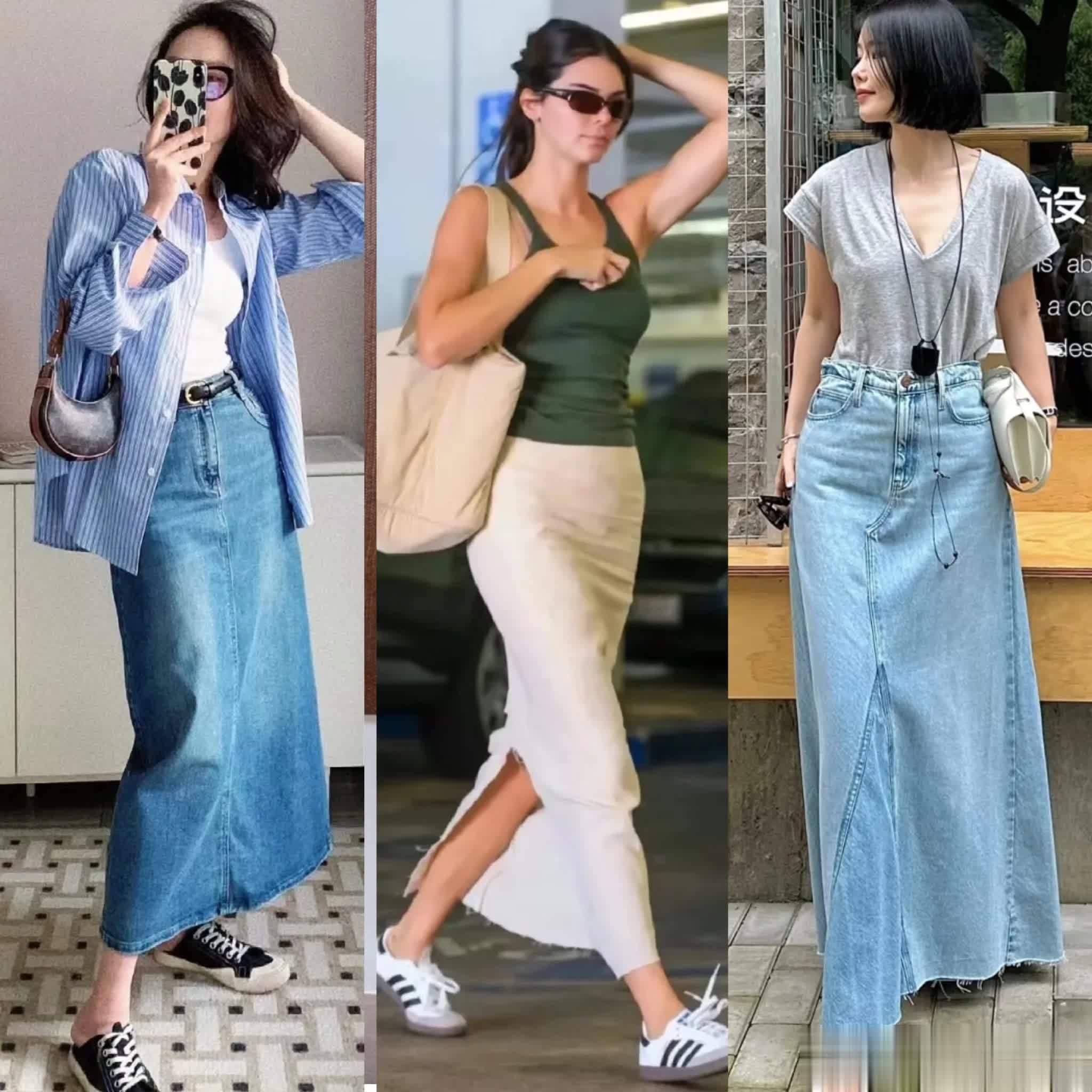 牛仔直筒裙无论是浅蓝、深蓝还是做旧款,都能轻松打造美式复古、法式慵懒或日系清新风格,更百变有趣。