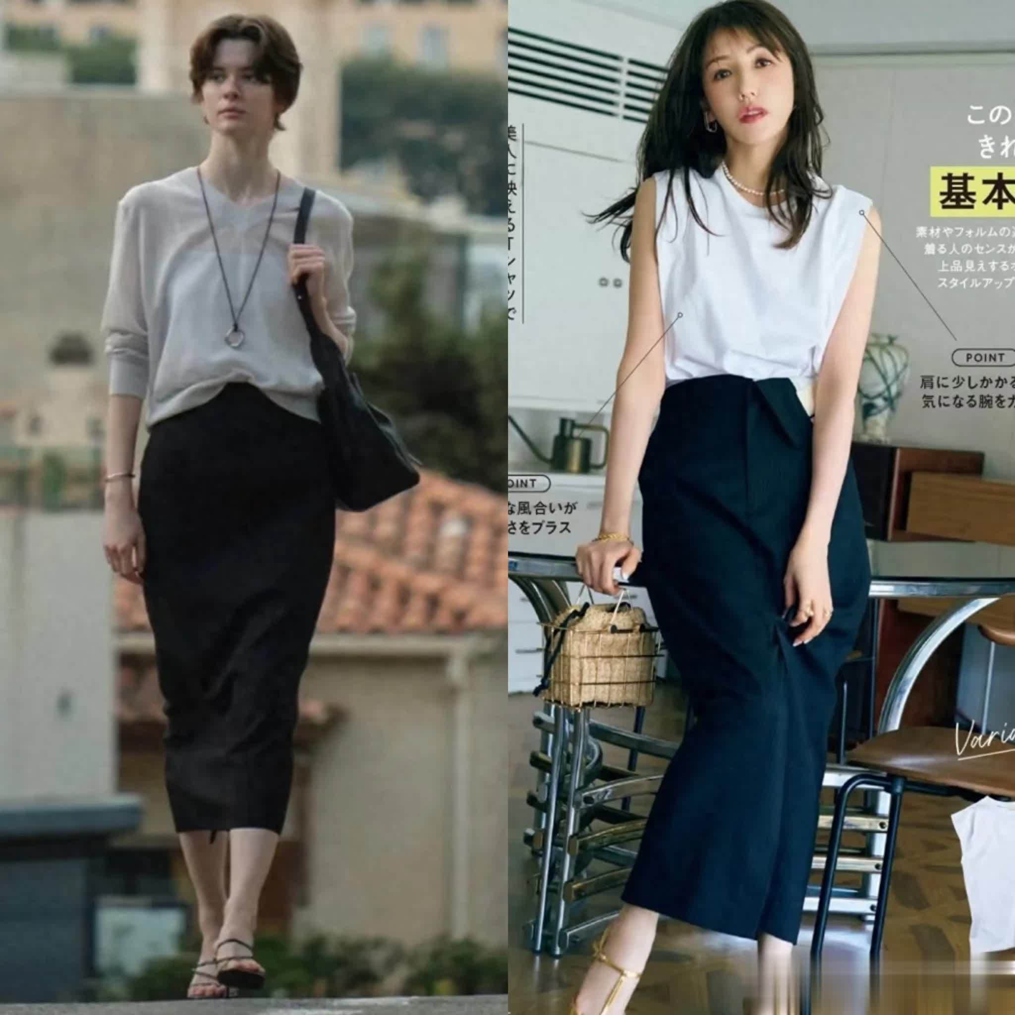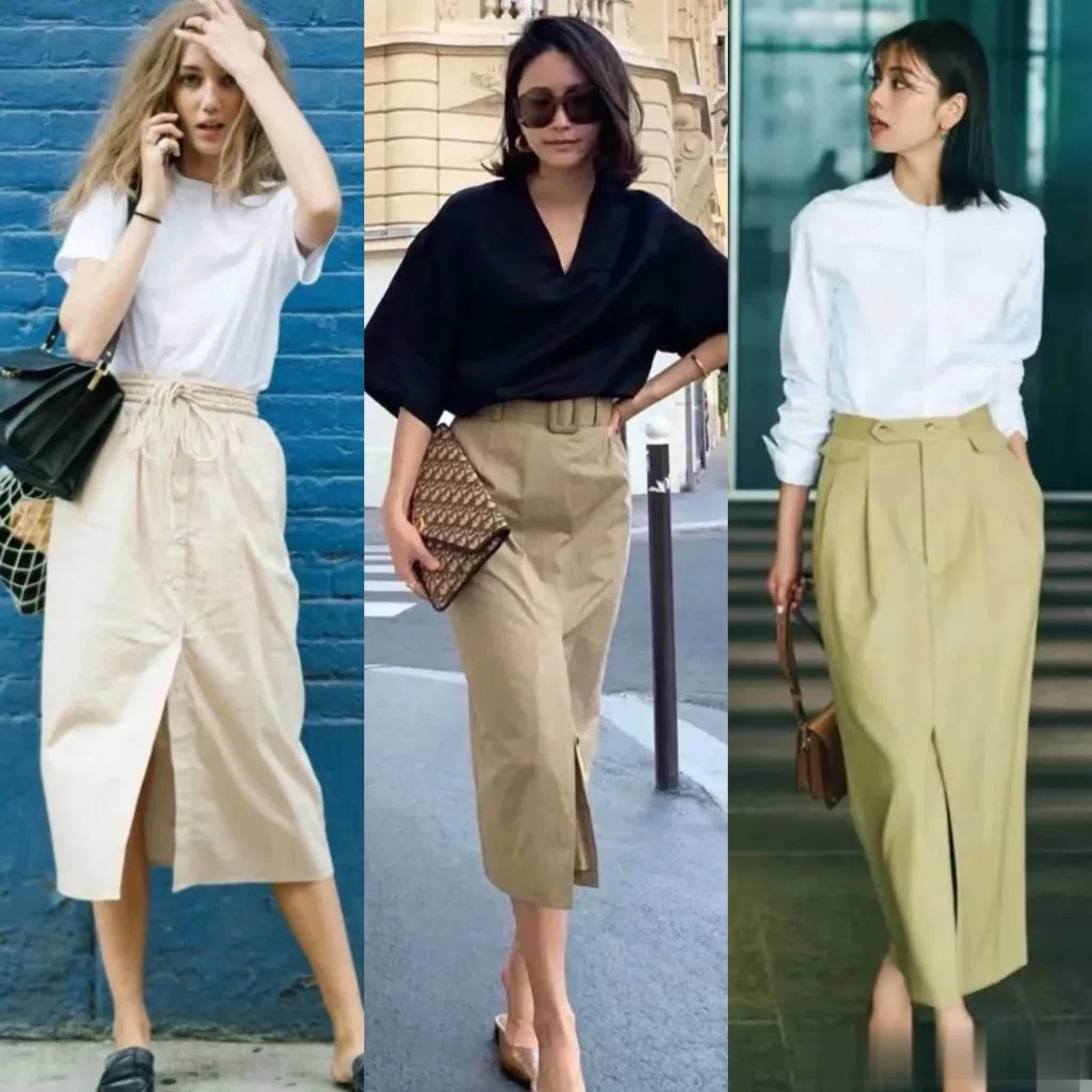 每年都会穿直筒裙,因为它经典不过时,又百搭实穿,从基础黑、白、卡其到莫兰迪色系,再到缎面、牛仔、雪纺等面料,适合各种场合。