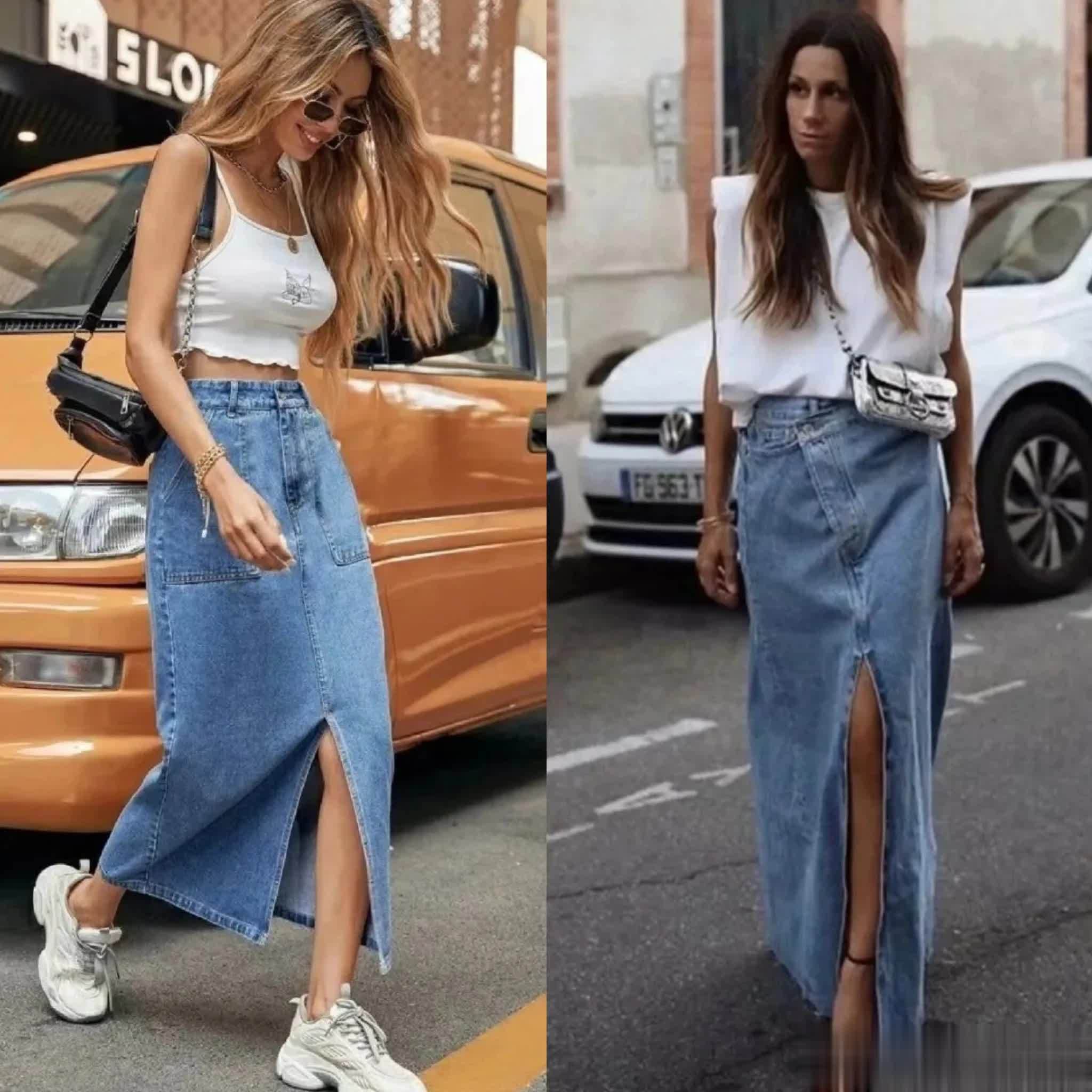 越来越多的女生喜欢复古休闲的风格,而牛仔直筒裙凭借90年代的复古感与百搭性赢得了时髦精们的芳心。